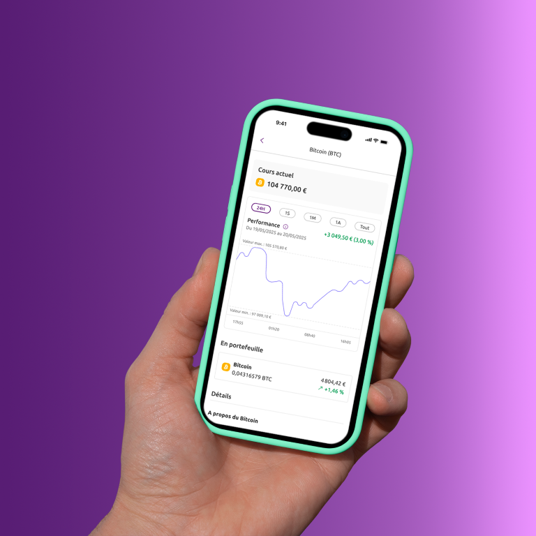 Investir dans les cryptoactifs comporte des risques de liquidité, de volatilité et de perte partielle ou totale en capital. Les cryptoactifs conservés ne sont pas couverts par les mécanismes de garantie des dépôts et des titres. D’autres risques spécifiques existent. Pour plus d’informations, nous vous invitons à consulter la rubrique consacrée aux Risques.